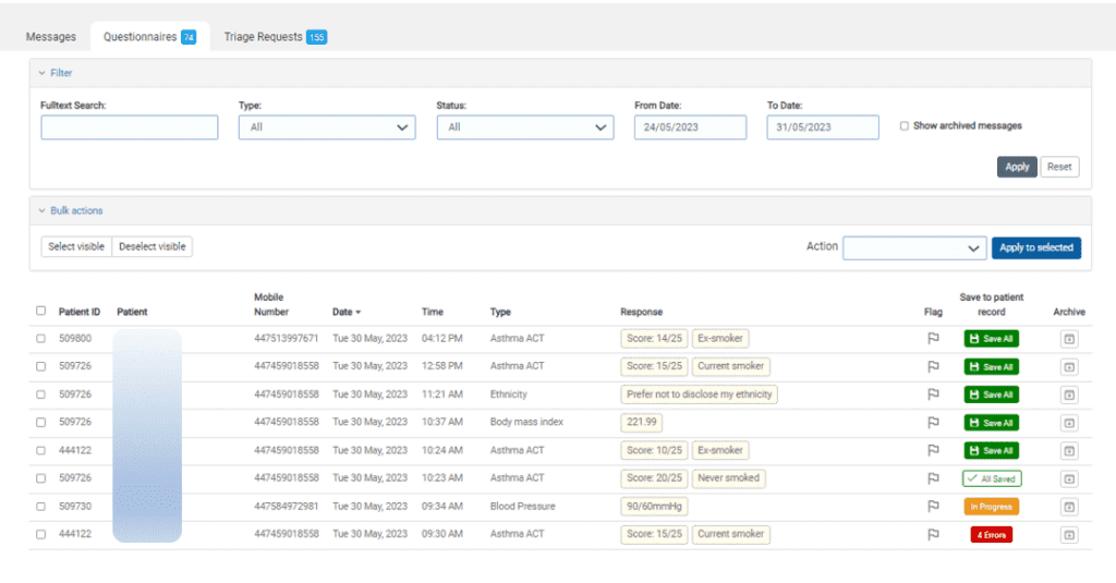 When a patient responds to a Patient Questionnaire sent to them, their replies will be stored in myGP Connect within the Inbox.